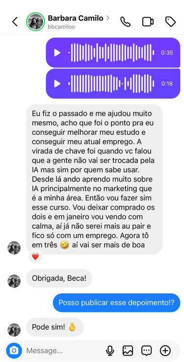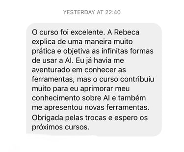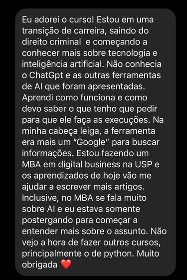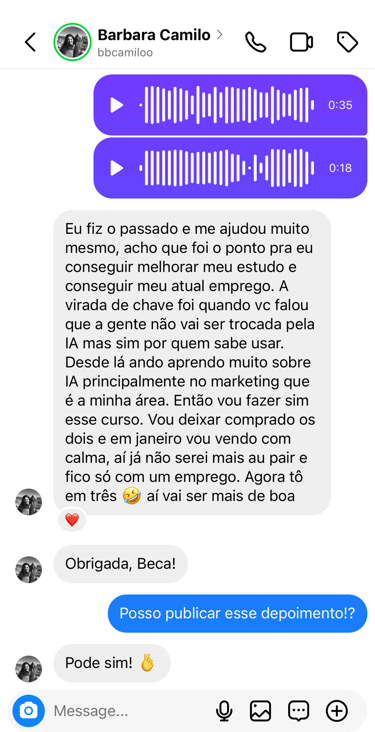 Mesmo sem experiência prévia com IA, você aprenderá de forma clara, direta e prática, com métodos que podem ser aplicados imediatamente.