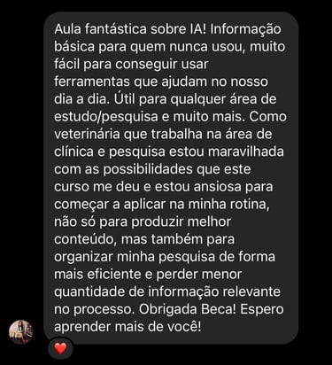 Você verá na prática como o uso da IA pode poupar horas de trabalho, aumentar sua produtividade e elevar a qualidade das suas produções acadêmicas.